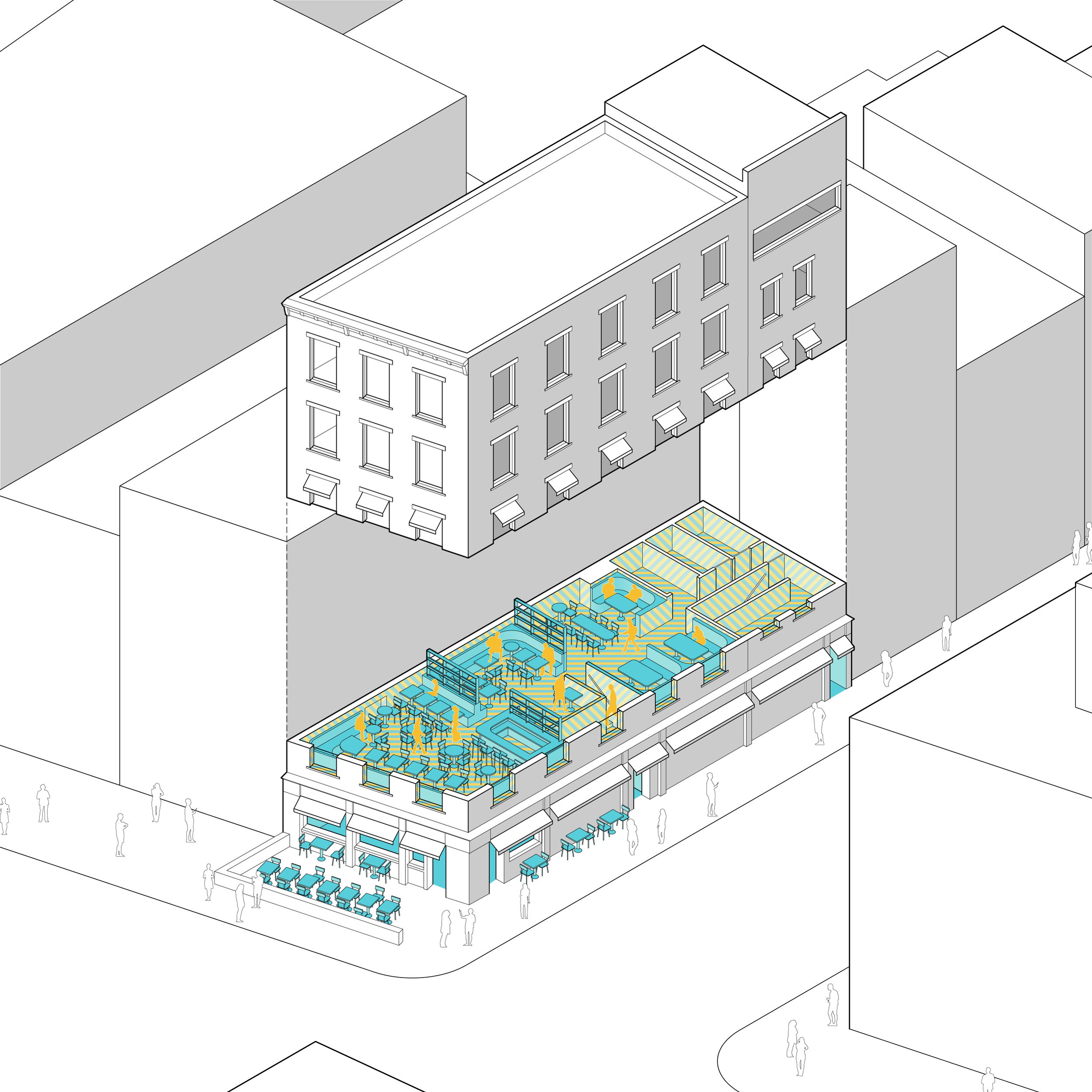 Throughout the past decade, a suite of ambitious startup companies, flush with venture capital, have developed innovative protocols and digital infrastructures to facilitate use-multiplying and resource-sharing piggybackings in both the workspace and housing sectors. SPACIOUS and KETTLESPACE, two drop-in workspace management companies founded in 2016, tap into the daytime availability of well-designed restaurant spaces and make them available as short-term workspaces until those restaurants open for business at dinner. Unlike coworking giant WeWork (which purchased Spacious in August of 2019, before unceremoniously shuttering it four months later amidst its own financial woes), Spacious and KettleSpace are not leaseholders; they simply manage the contracts, infrastructures, and hospitality operations necessary to provide their service at each partner location and split the resulting profits with the restaurant operator. As of March 2021, KettleSpace was operating only in New York City; and Spacious, before its closing, operated only in New York City and San Francisco—cities where the supply of itinerant office workers is sufficiently high and in relative proportion to the number of high-end restaurants with heavy rent burdens. How this business model will evolve during the long wake of the COVID-19 pandemic is an open question.